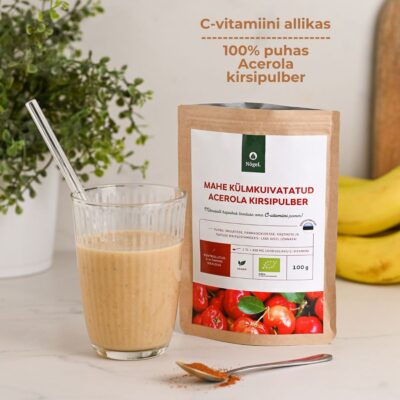 1 TL (3 G) acerola kirsipulbrit sisaldab 450 mg* C-vitamiini