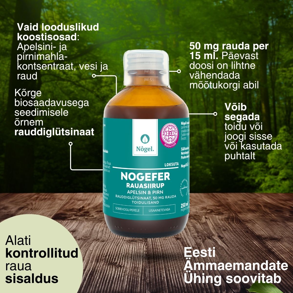 Vaid 4 koostisosa. Kontrollitud gluteenivaba. Raua sisaldus on laboris kontollitud.