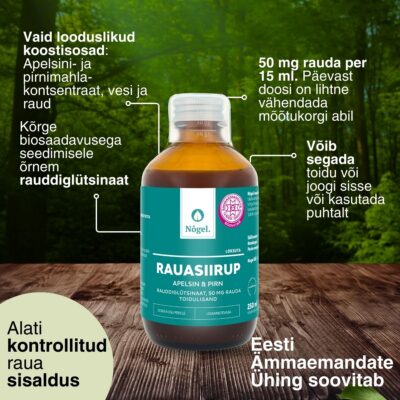 Väga hea ja effektiivne rauasiirup! Mulle eriti meeldib, et see on ilma lisatud suhkruta ja sisaldab ainult naturaalseid koostoaineid. Mul oli veretesti järgi madal raud, kuid pärast 1 kuu rauasiirupi igapäevast tarbimist on uue testi järgi rauatase normis 😊 Aitäh Nõgel!