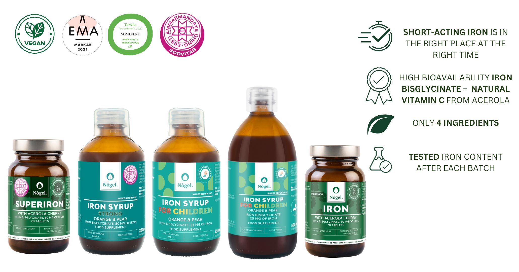 Do not take iron with these foods: Coffee, tea, dairy and foods rich in calcium (also oat and soya milk products containing calcium). Caffeine and tannin reduce iron absorption and a lot of calcium also inhibits absorption. You should wait for 4 hours between taking iron and thyroid hormone thyroxine. You can take iron with water or juice (e.g. apple and orange juice neutralize the metal taste of iron very well). All our iron products contain optimized level of natural vitamin C for better iron absorption. Lower optimized levels of vitamin C reduce the oxidative stress caused by iron supplements (high doses of vitamin C and iron may result in free unbind iron that causes oxidative stress to our cells).
